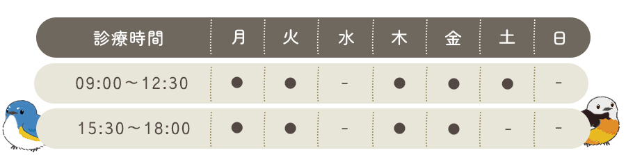 休診日:日曜日、水曜日、第5土曜日、祝日