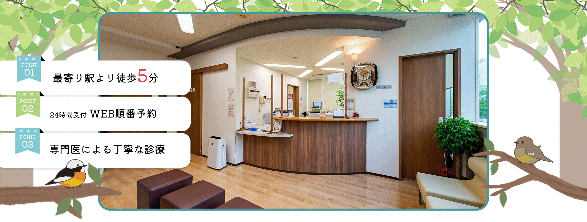 当院では患者様の待ち時間短縮や利便性向上のため、【時間帯予約制】を採用しております。余裕をもってご来院いただけますようお願いします。